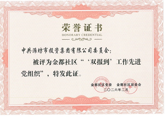 近日,集团公司党委被奎文区北苑街道金都社区党委授予“双报到”工作先进党组织荣誉称号,并收到社区党委发来的热情洋溢的感谢信。这一荣誉与感谢,是对集团党委及广大党员过去一年深度融入社区、倾情服务群众、履行社会责任工作的充分肯定与崇高礼赞。