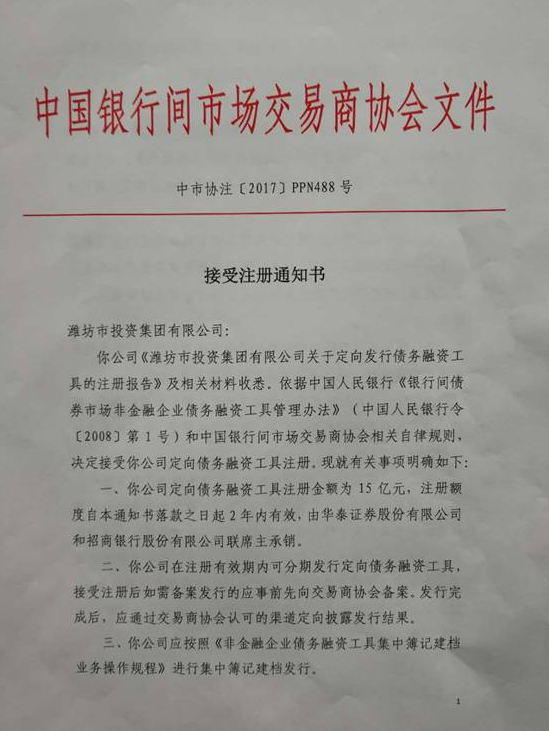 本次非公开定向债务融资工具的成功注册,标志着集团公司进入了中国债券市场的主板市场,为集团公司打开了新的、更广阔的融资渠道,也为集团公司促进地方经济和社会事业发展提供了新的动力。作为首次注册项目,本次注册环节用时不足三个月,体现了中国银行间市场交易商协会对集团公司企业制度、业务模式和公司治理的高度认可。