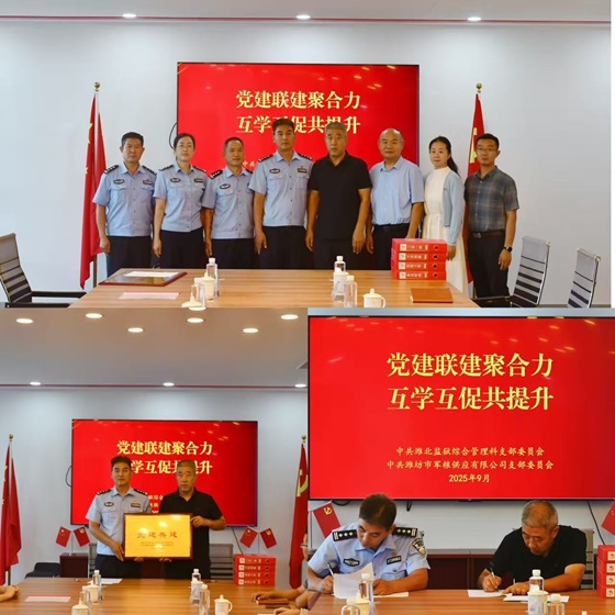 为提升党建工作水平,加强单位间交流互鉴,9月17日上午,潍北监狱综合管理科党支部书记、科长李同勇一行4人到集团所属市军粮供应公司开展党建工作交流活动。市军粮供应公司党支部书记、董事长鞠宝友参加,部分班子成员陪同。