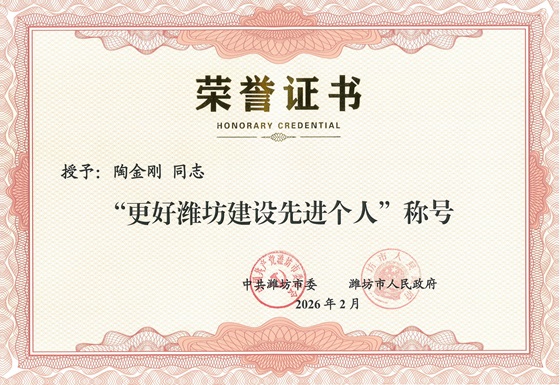近日,中共潍坊市委、潍坊市人民政府对更好潍坊建设先进集体和先进个人予以通报表彰,市投资集团党委副书记、总经理陶金刚,集团所属昌威交通工程公司总经理刘新强2名同志荣获“更好潍坊建设先进个人”称号。